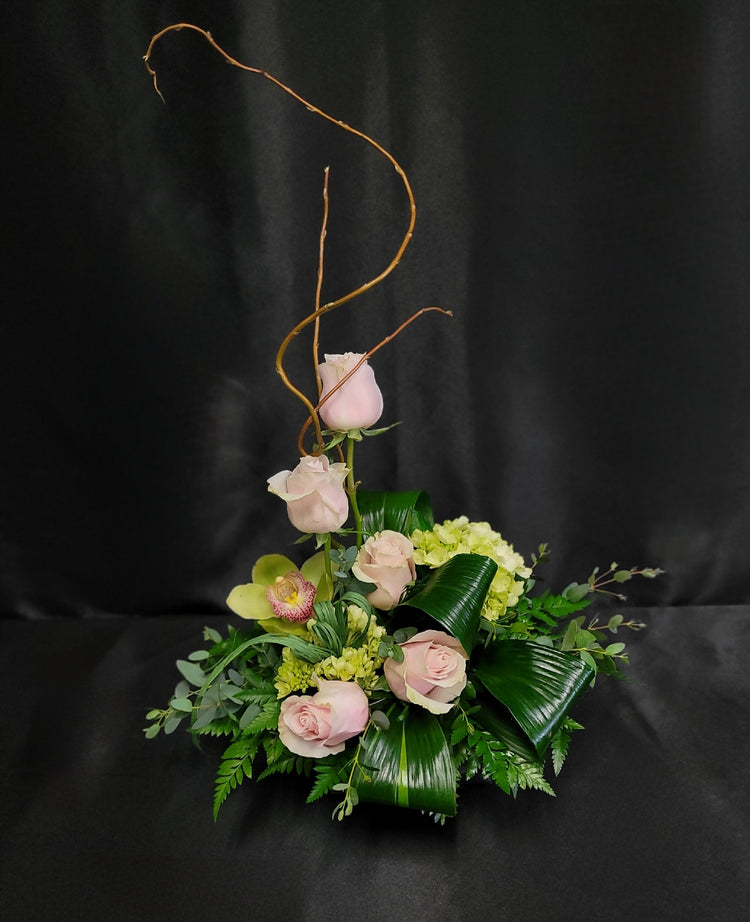 This Blush Orchid arrangement is a stunning mix of vintage pink roses and flowers. Featuring a blush orchid as the centerpiece, it creates a warm, inviting atmosphere with its delicate beauty. Each flower is carefully arranged in a unique design for an eye-catching display you'll be proud to show off.