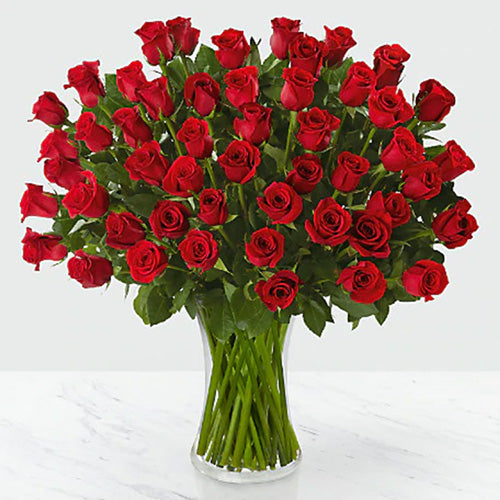 60 Long Stemmed Red Roses in a Vase