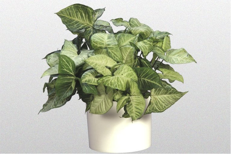 Compact in juvenile stage, then trailing, arrowhead-shaped leaves, often with white variegation, on long petioles