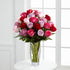 Captivating Color Rose Bouquet. Bursting with brilliant hues to capture their attention, these beautiful roses in the colors of fuchsia, red, pale pink, light lavender and purple are brought together with fresh, lush greens and perfectly arranged in a modern clear glass vase to create a wonderful way to convey your warmest wishes.