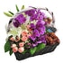 2x stems White Lilies, 2x stem purple orchid, 4x spray roses, 4x Wax, 2x Pack of strawberries, 2x Pack of blueberries, 1x Bag of grapes