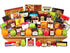 1x Wild salmon, 2x trail mix, 2x Smoked almonds, 4x Crackers, 1x Corn chip, 2x beer nuts, 2x Granola boxes, 1x Caramel popcorn, 1x Chocolate treat, 4x Cookies, 1x Covered pretzel, 3x Dried fruit, 5x chocolate covered nuts, 1x Smoked cheese, 3x Oranges, 4x Apples, 4x Pears, 4x Jams, 1x Honey, 2x Salsa