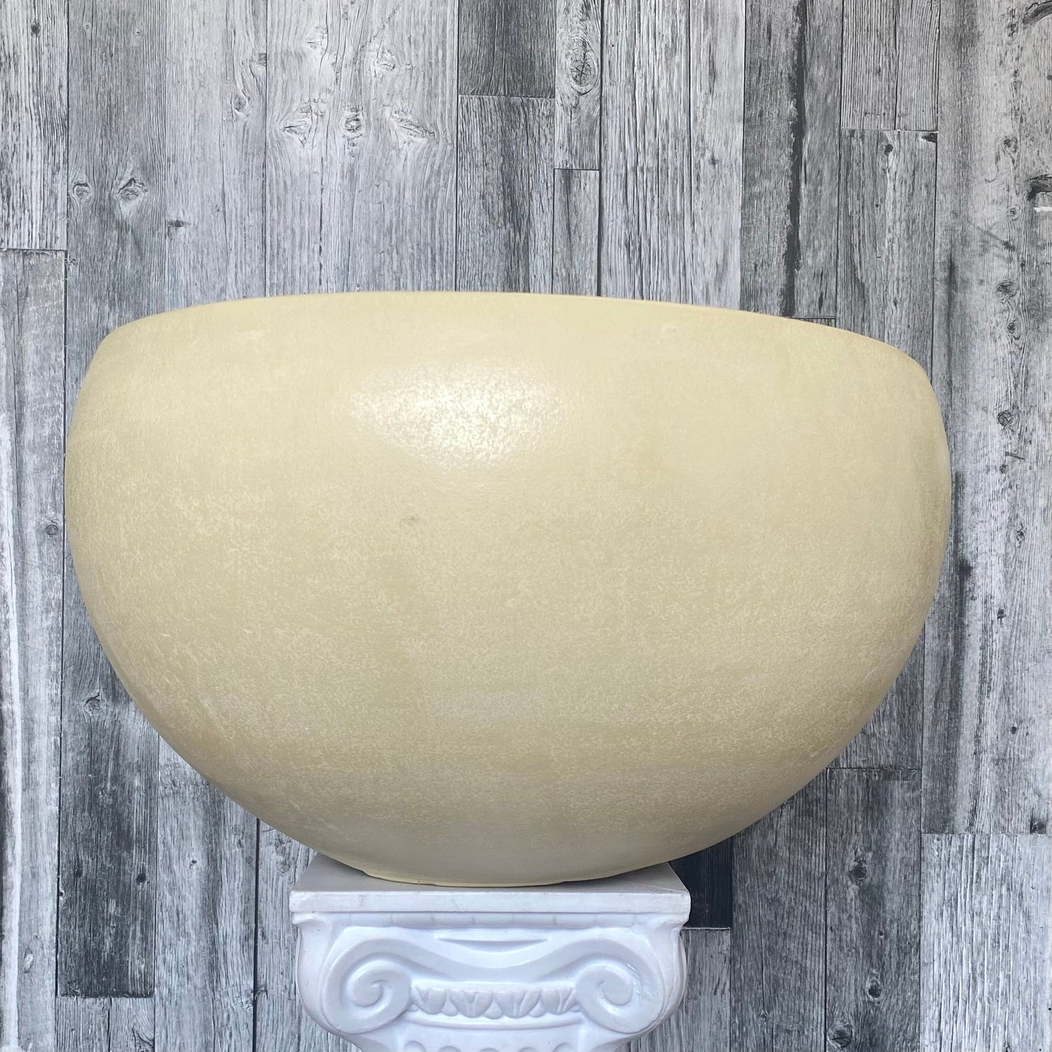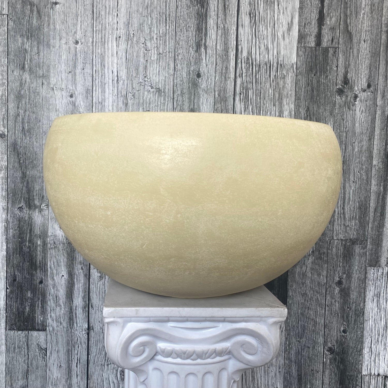 This low set ceramic pot is perfect for any plant or statement piece. This pot has a drainage hole and a beautiful subtle yellow colour with a matt finish.