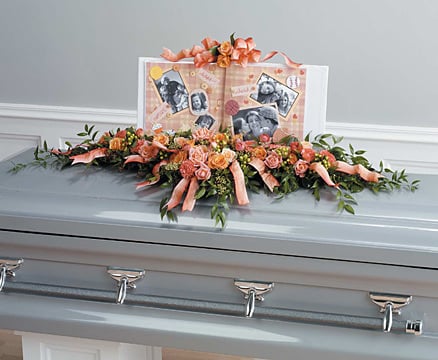 A fresh flower casket spray incorporating an album of their life. Funeral Home & Wake Flowers