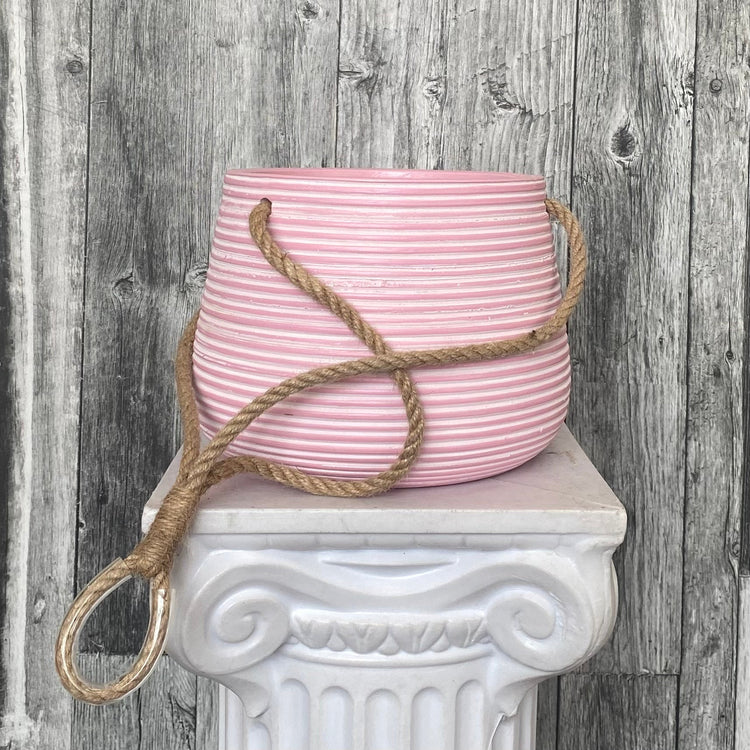 This ceramic is perfect for hanging plants. With a heavy duty rose attached this ceramic is ready to be hung in any space.