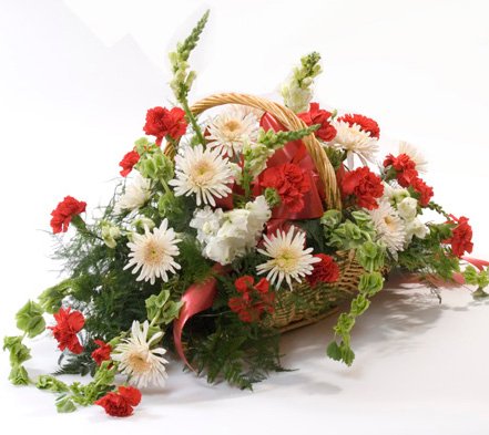 This beautiful basket is filled with Bell of Ireland, Asparagus, Carnations, Fiji Mums and Snap Dragons