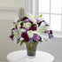 The Thinking of You™ Bouquet blooms with roses, lilies and carnations to send your special recipient a flower bouquet exuding a soft sophistication. Gorgeous white roses and white Oriental Lilies are perfectly offset by lavender carnations, purple mini carnations and lavender statice to create an incredible flower arrangement. Presented in a designer lavender glass vase featuring hand cut accents, this mixed flower bouquet is a wonderful gift to send in honor of a birthday, anniversary, t