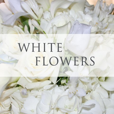 Hand-made bouquet or arrangement in a vase as per selected option, designed in mostly white, off-white and cream colour flowers, blooms and greens as appropriate. The type of flowers used will depend on your selected size and price range. We may use some or all the following flowers: white roses, white carnations, white gerberas, white calla lilies, cream lilies, Asiatic lilies, mums and assorted greens.